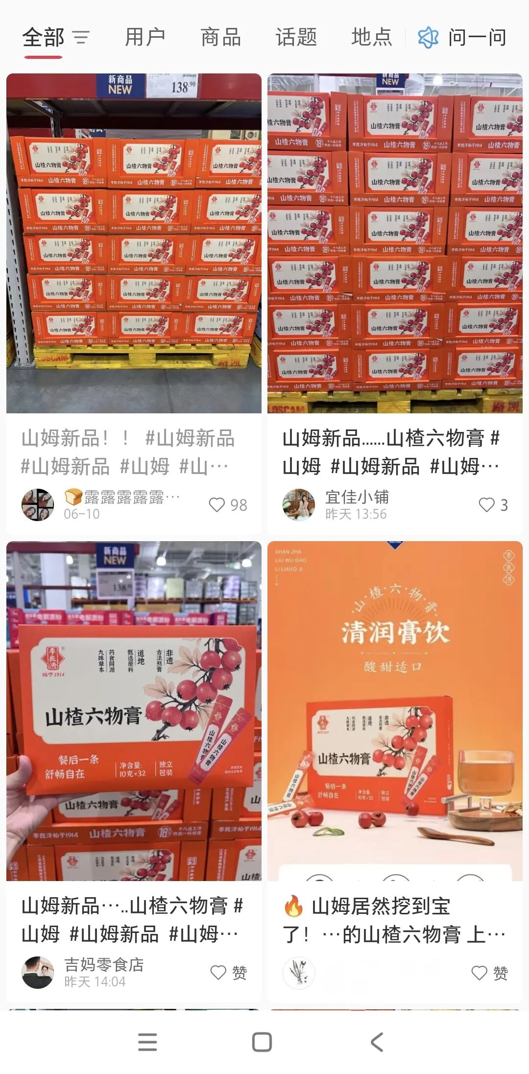 在山姆店,货架上排列整齐的山楂六物膏不时被工作人员补货,仍供不应求。在社交媒体上,网友们也纷纷晒出在山姆买到的李良济山楂六物膏!