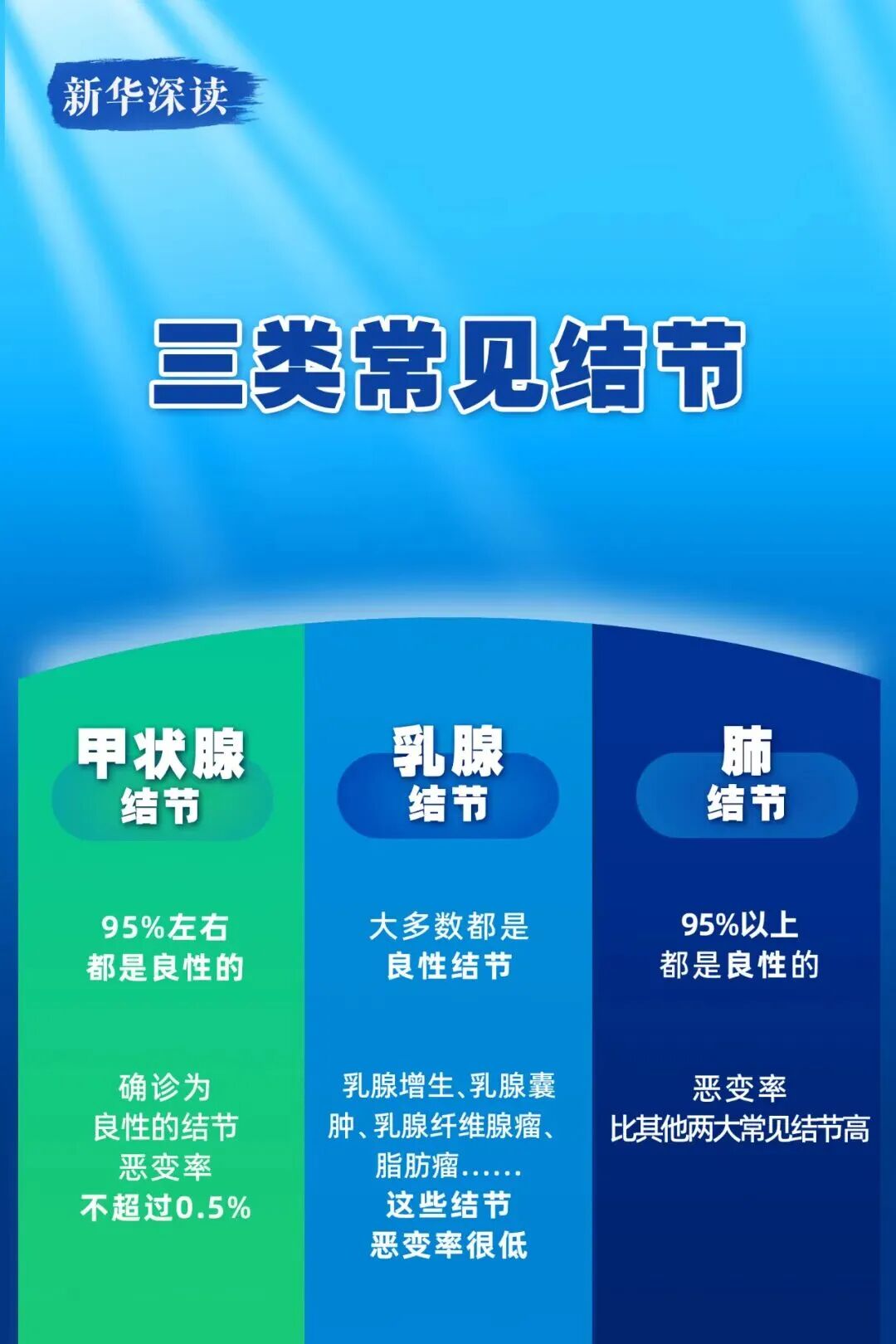 随着医学影像技术的进步和体检普及度的提升,甲状腺、乳腺及肺结节的检出率呈上升趋势。体检报告上的“结节”一词,成为许多人的“心结”。