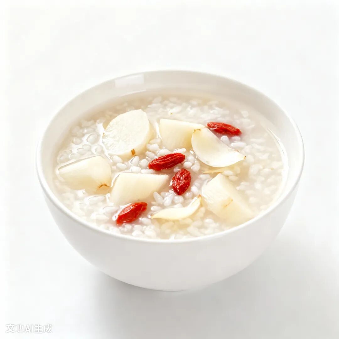 材料:鲜山药100克,干百合20克或鲜百合30克),大米50克,枸杞适量,冰糖少许(可选)。