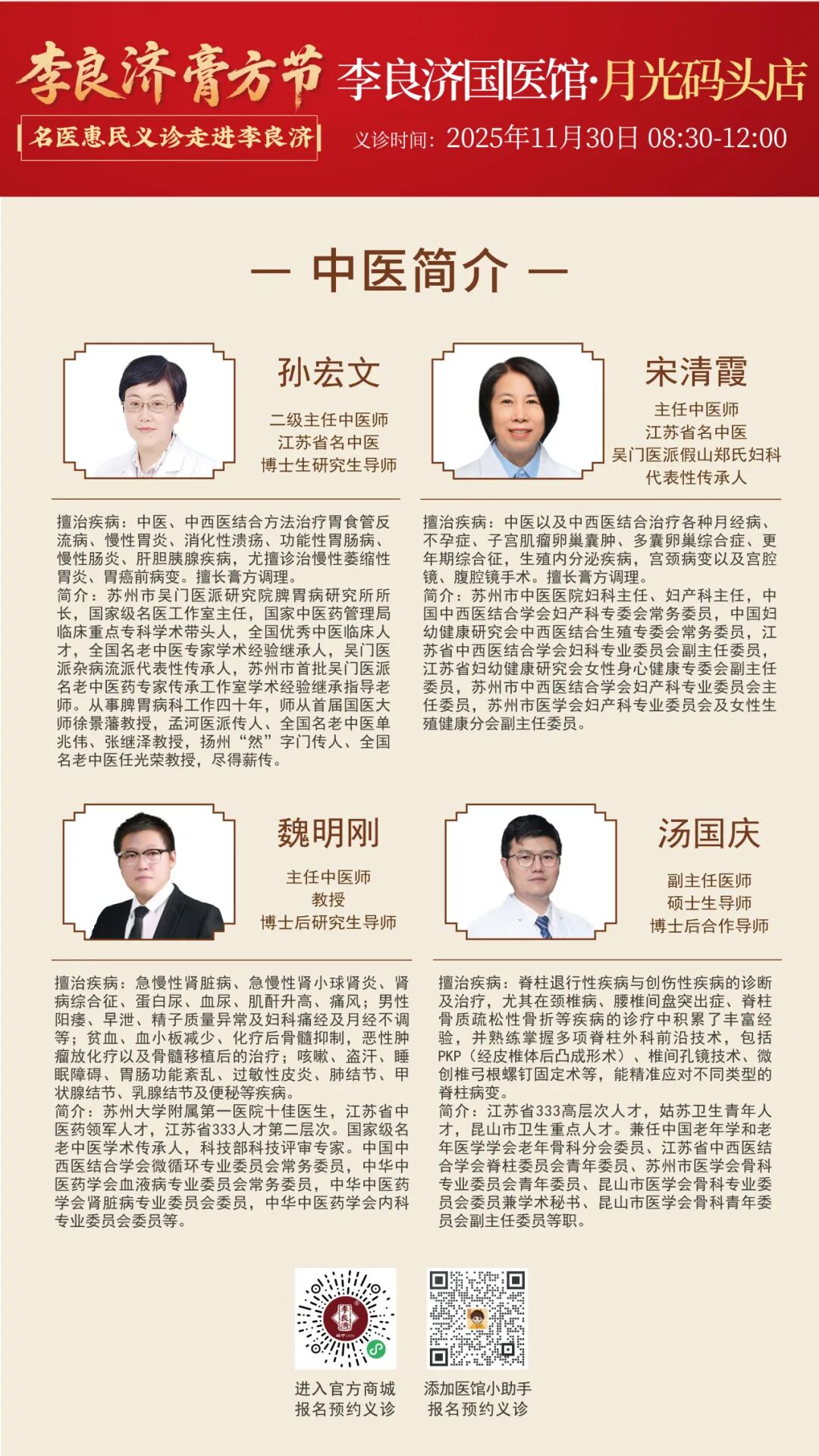 名医义诊!11月29日、30日,名医专家惠民义诊,走进李良济相城店、园区店,送健康暖人心~