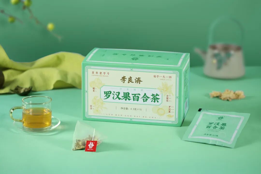 李良济罗汉果百合茶,由百合、橘皮、栀子、菊花、金银花、罗汉果等多味药材配比而成。适合嗓子干痒,痰多咳嗽,易口干舌燥的人,咽喉肿痛,肺热咳嗽,可以喝喝它。