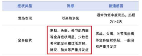许多人误将流感当作普通感冒,这是常见的误区。其实他们有着明显的区别: