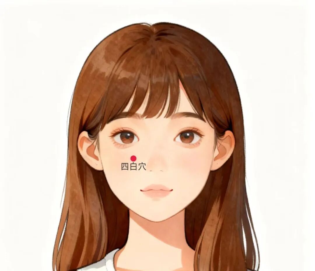 四白穴是足阳明胃经腧穴,在面部,目正视,瞳孔直下,眶下孔处。