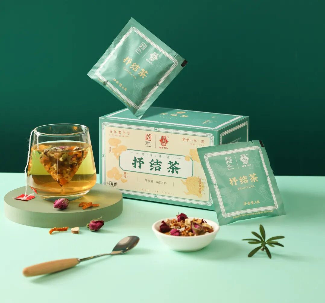 李良济遵循药食同源的原则,参考以上古籍《千家妙方》的“加味解毒散结汤”,《洞天奥旨》的“英藤汤”两个调理结节的古典经方,结合李良济名医—蔡家宁散结方茶,以食材代替药材,研发出一款食养茶饮——抒结茶。