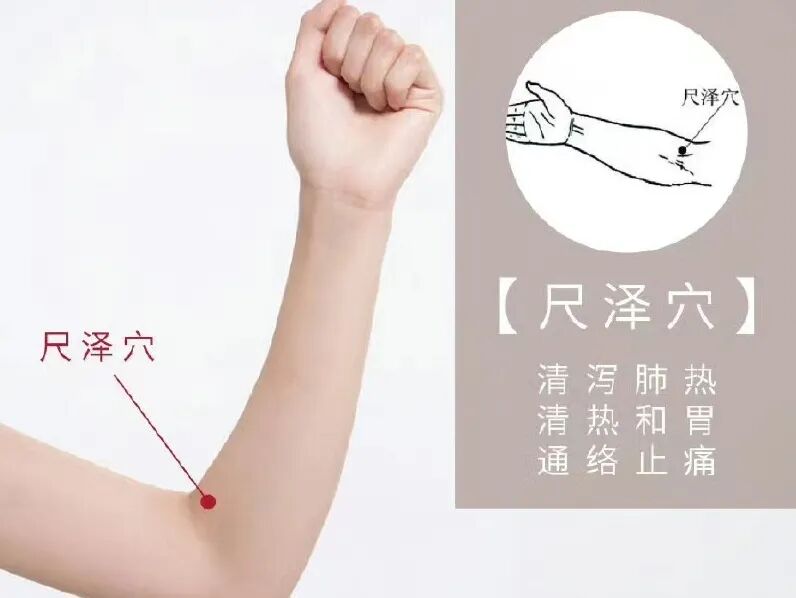 操作步骤:由轻到重,慢慢拍打左右尺泽穴各60次,以感到酸、麻、胀为宜。