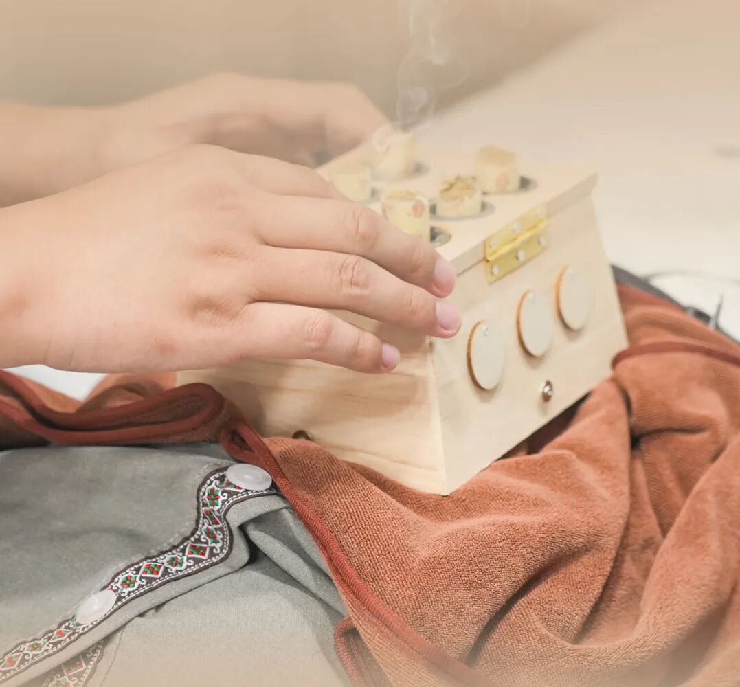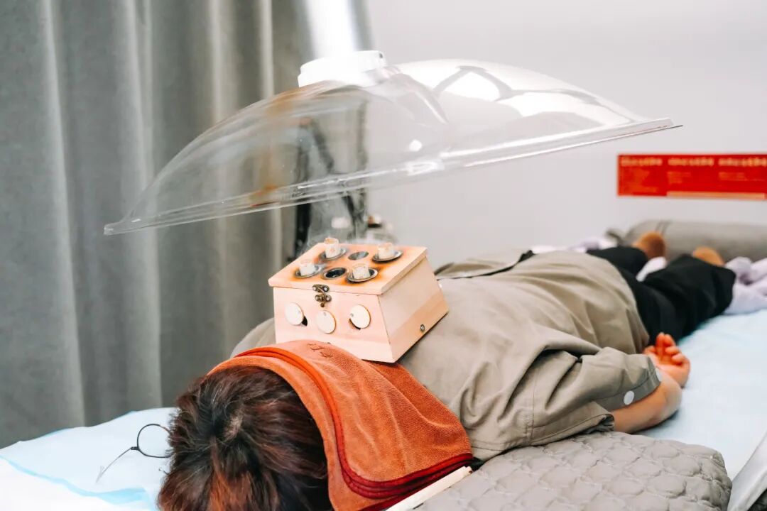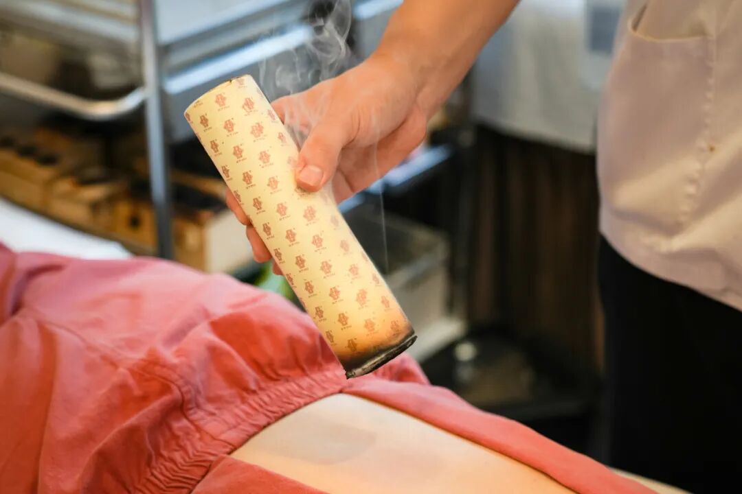 在李良济理疗馆,在艾香袅袅中,放松身心,把点燃艾条的木盒灸或置于腹部、或放置在后背,感受艾灸的温暖和疗愈,享受的宁静。