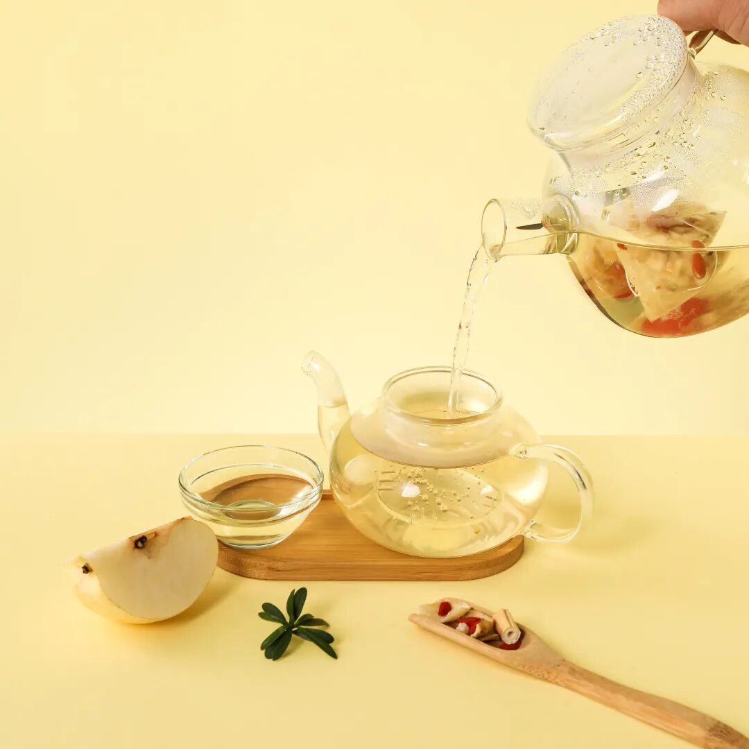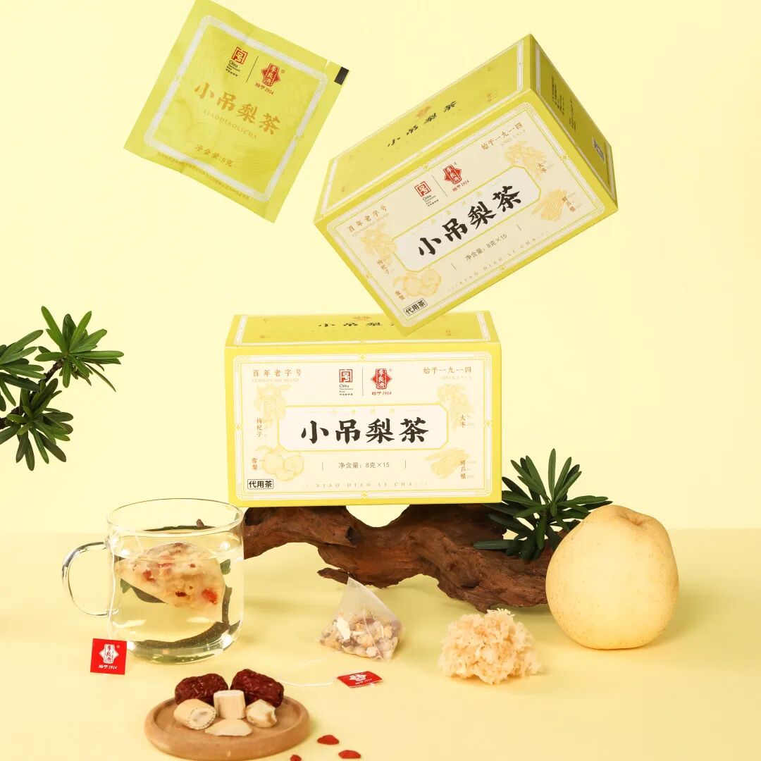 小吊梨茶,参考古方,精选品质原材,雪花糖、雪梨、大枣、银耳、鲜芦根、枸杞子、百合等,精心搭配组合。