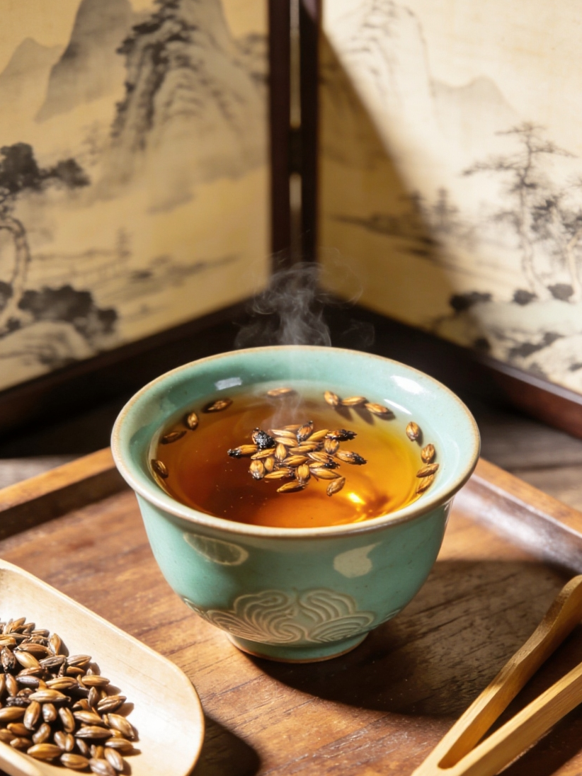 大麦茶:可以在商超购买成品,也可自制。把去皮的大麦仁在小火上慢慢炒至米香四溢,颜色焦黄。然后取炒过的大麦,用水煮沸或者用沸水冲泡即可。