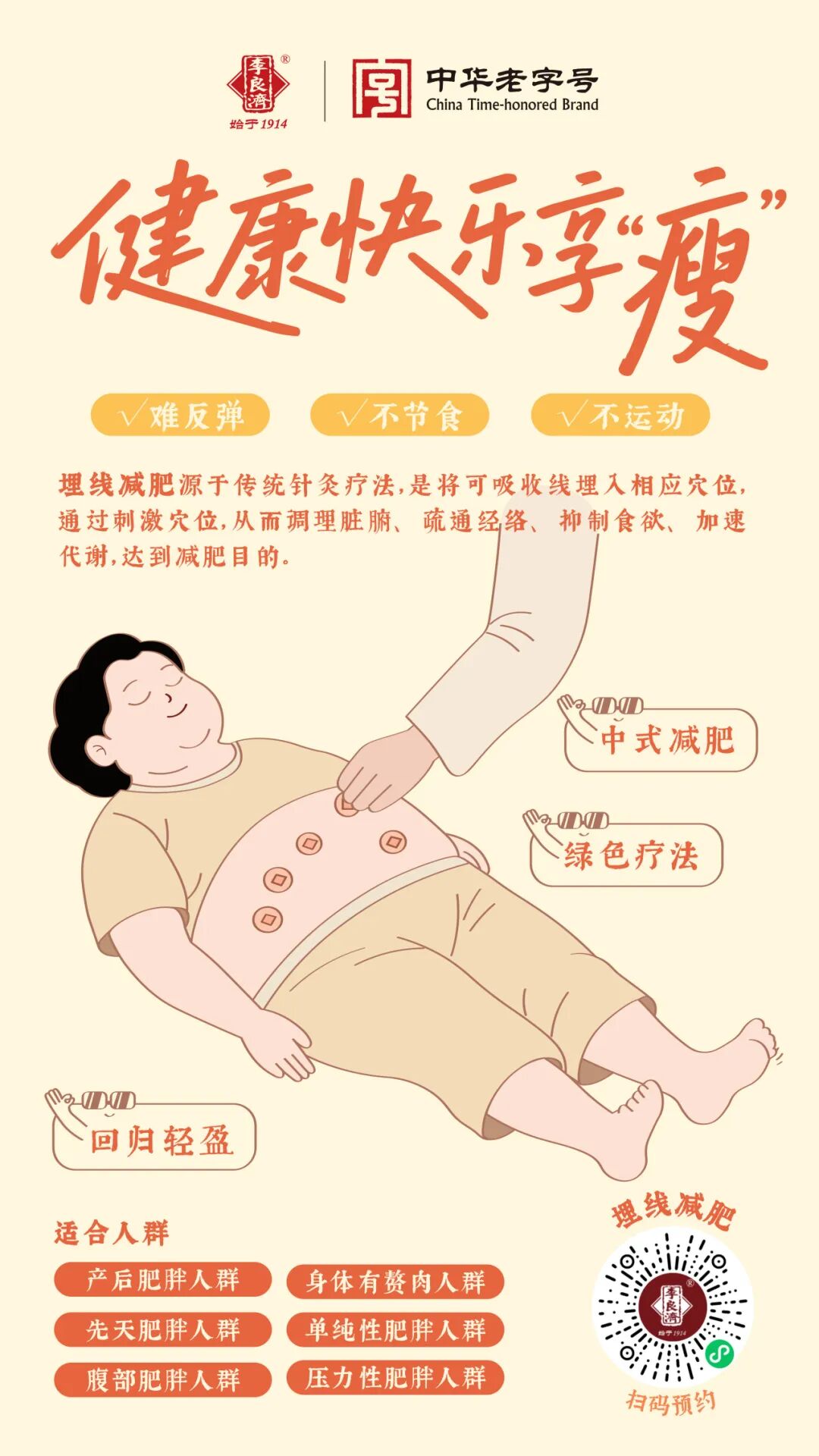 李良济理疗馆开设有“埋线减肥”调理项目,非常适合腰腹部、大腿以及全身肥胖的朋友,您可以点击下方线上团购,来到门店体验~